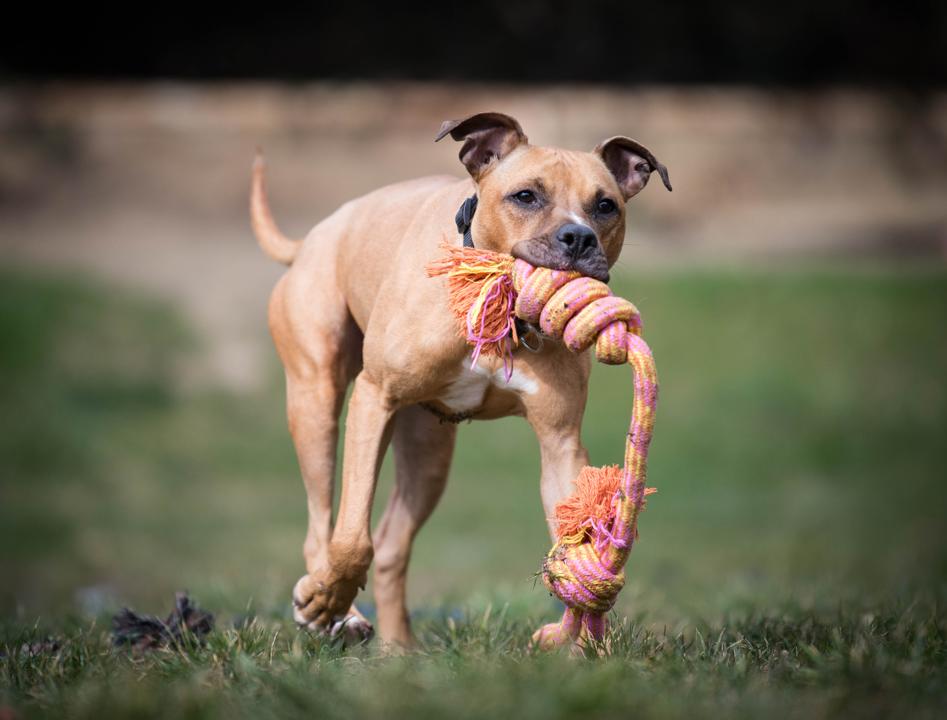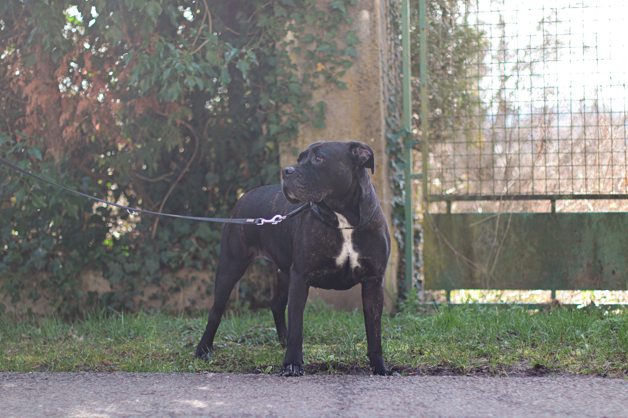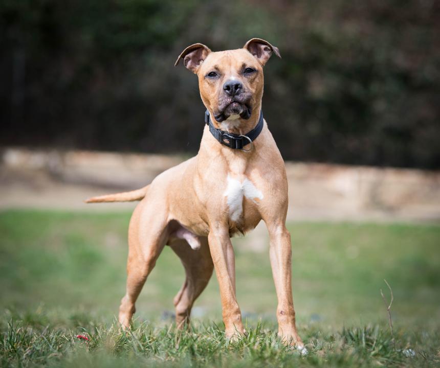 Croisé staff, Steffy n’est pas catégorisé. Il s’entend avec ses congénères, mais un placement sans chats sera préférable. De par son côté assez brut et son énergie parfois débordante, la présence d’enfants en bas âge n’est pas recommandée.