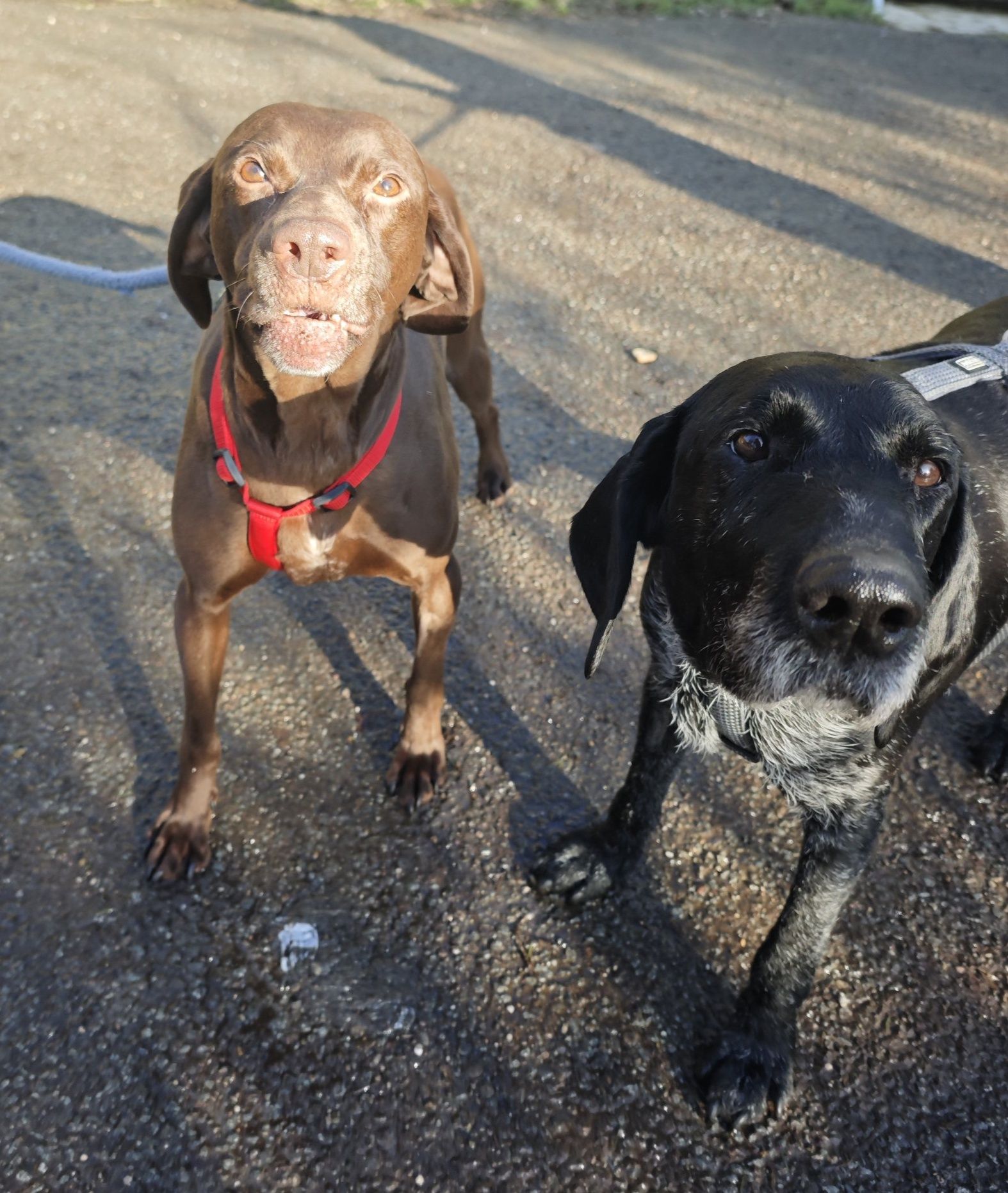 En promenade, elles sont faciles et sereines, marchent tranquillement et ne présentent aucune réactivité envers leurs congénères. Leur calme naturel en fait de très bonnes chiennes pour un foyer recherchant des animaux posés et équilibrés. En revanche, un placement sans chats sera privilégié